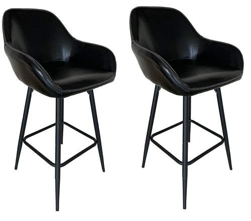 25 inch Bucket Black Faux Leather Accent Dining Bar Chair Set or 2…5091BM-2