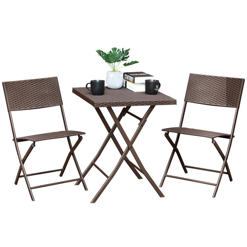 3 piece Wicker Bistro Set, Foldable One Table and Two Chairs for Garden, Yard, Porch, PoolsideW1041100013