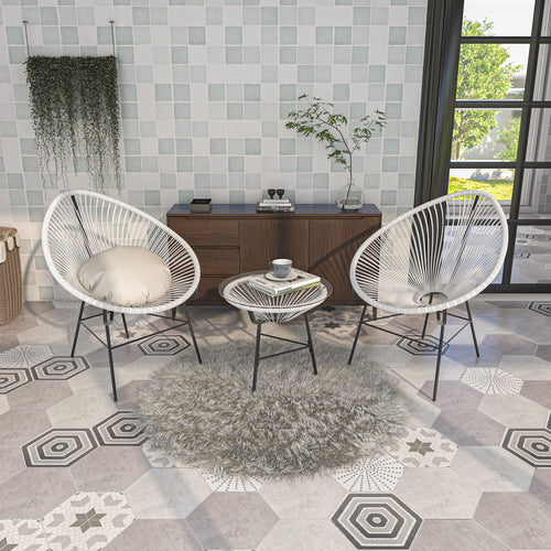 3 Pieces Patio Furniture Set Outdoor All Weather Hand-Woven PE Rattan Conversation Bistro Sets 2 Chairs with Glass Top Coffee Table Sets for Backyard, Livingroom, Balcony (White)HW-109BK-WH