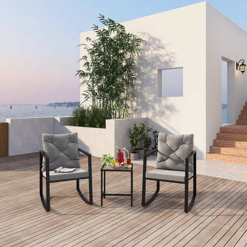 3 Pieces Patio Set Outdoor Patio Furniture Sets Modern Rocking Chair Furniture Sets Clearance Cushioned Chairs Conversation Sets with Coffee Table for Yard and Bistro (Gray)HW-006BK-LG