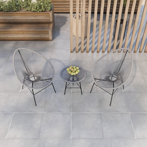 3 Pieces Patio Furniture Set Outdoor All Weather Hand-Woven PE Rattan Conversation Bistro Sets 2 Chairs with Glass Top Coffee Table Sets for Backyard Livingroom Balcony (Gray)HW-109BK-GE