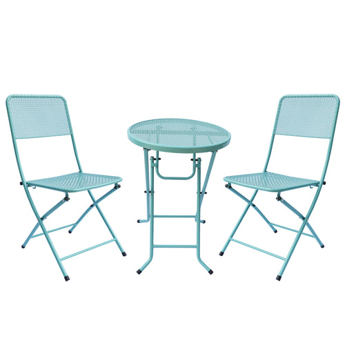 3-Piece Patio Bistro Set, Metal Folding Outdoor Patio Furniture Sets, Stainless Steel Patio Conversation Set with Folding Patio Round Table and Chairs for Yard, Garden or BalconyYL-MB005-LIGHT BLUE