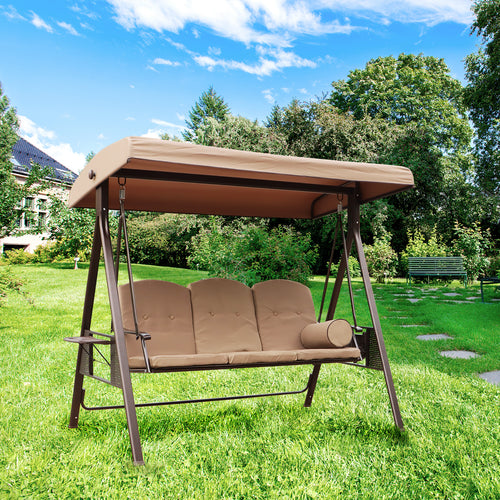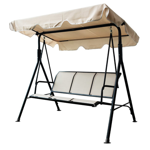 3-Seat Outdoor Patio Porch Swing Chair, Adjustable Canopy Swing Glider with Weather Resistant Steel Frame, Adjustable Tilt Canopy,Removable Cushions and Pillow Included for Backyard,BeigeUSAC-BNM001-KK3P