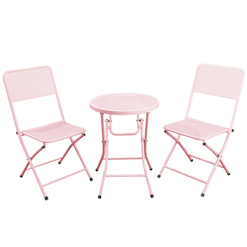 3-Piece Patio Bistro Set, Metal Folding Outdoor Patio Furniture Sets, Stainless Steel Patio Conversation Set with Folding Patio Round Table and Chairs for Yard, Garden or BalconyYL-MB005-PINK