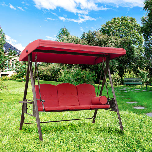 3-Seat Outdoor Patio Porch Swing Chair, Adjustable Canopy Swing Glider with Weather Resistant Steel Frame, Adjustable Tilt Canopy,Removable Cushions and Pillow Included for Backyard,RedUSAC-BNM001-WR3P