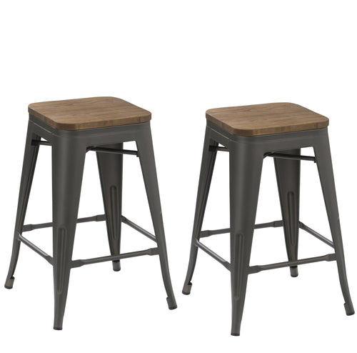 30" Industrial Metal Vintage Stackable Distressed Counter Bar Stool Wood top- 25003MGM-2