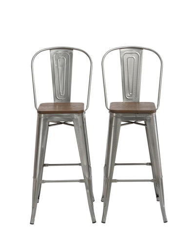 30" Industrial Clear Metal Antique Rustic counter Bar Stool Chair High Back Set of 25048DM-2