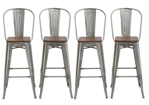 30" Industrial Clear Metal Antique Rustic height Bar Stool Chair High Back Set of 45048DM-4