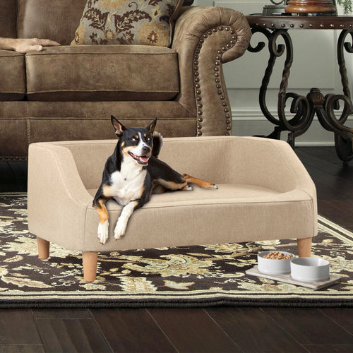 32" Beige Pet Sofa, Dog Sofa, Cat sofa, Cat Bed, Pet Bed, Dog Bed, Cat Bed, rectangle sofa with movable cushion, with wood style footWF282004BAA