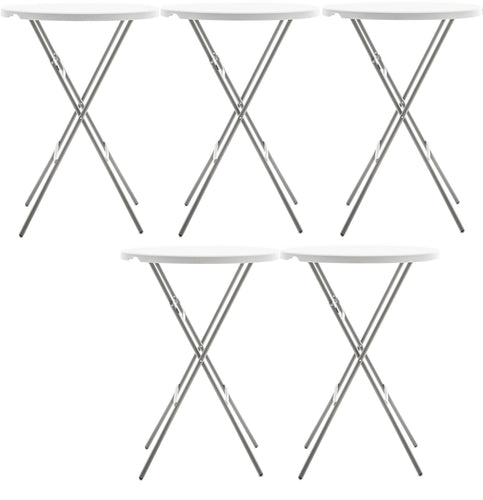 32" Round 43" Bar Height White Granite Folding Table Portable Commercial Banquet Card Plastic Dining Weddy Party Event Home Kitchen Outdoor Set of 5AM5234-5