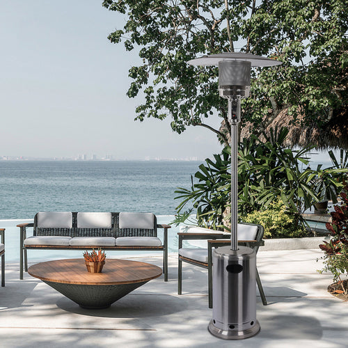 46000BTU Propane Stainless Steel Mushroom Outdoor Patio Heater, with Two Smooth-rolling Wheels,with Hose Set,with Black Cover,with Round Side TableUJN-SO02-SS