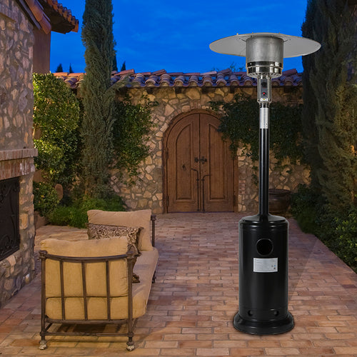 46000BTU Propane Black powder coated Iron Mushroom Outdoor Patio Heater, with Two Smooth-rolling Wheels,with Hose Set,with Black CoverUJN-IO01-BK