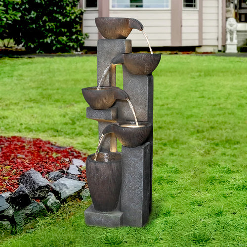 5-Tier Floor Standing Outdoor Water Fountains for Garden Patio Deck with LEDW122747920