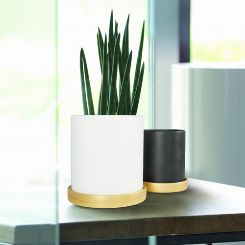 6 in. and 4.8 in. White and Black Ceramic Flower Pots with Drain Hole and Saucer (2-Pack)HFHY-008