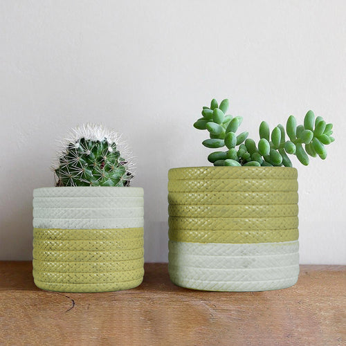5.3 in. and 4.5 in. Rattan Pattern Ceramic Flower Pots with Drain Holes and Plugs (Pack-2)HFHY-005