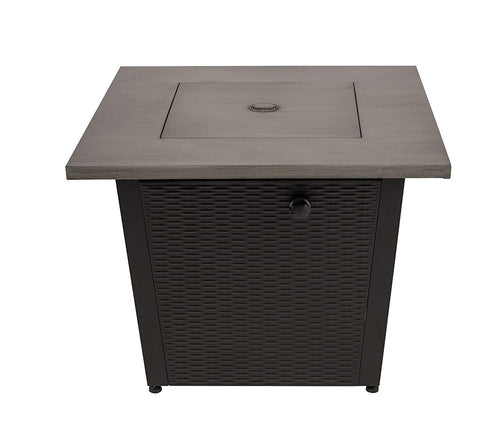 50,000 BTU 32inch Square Outdoor Propane Fire Pits Table, Gray Wood Grain Table Top with Lid, ETL Certification, for Garden Poolside Patio Backyard DeckHYMY-CDFP-CASB