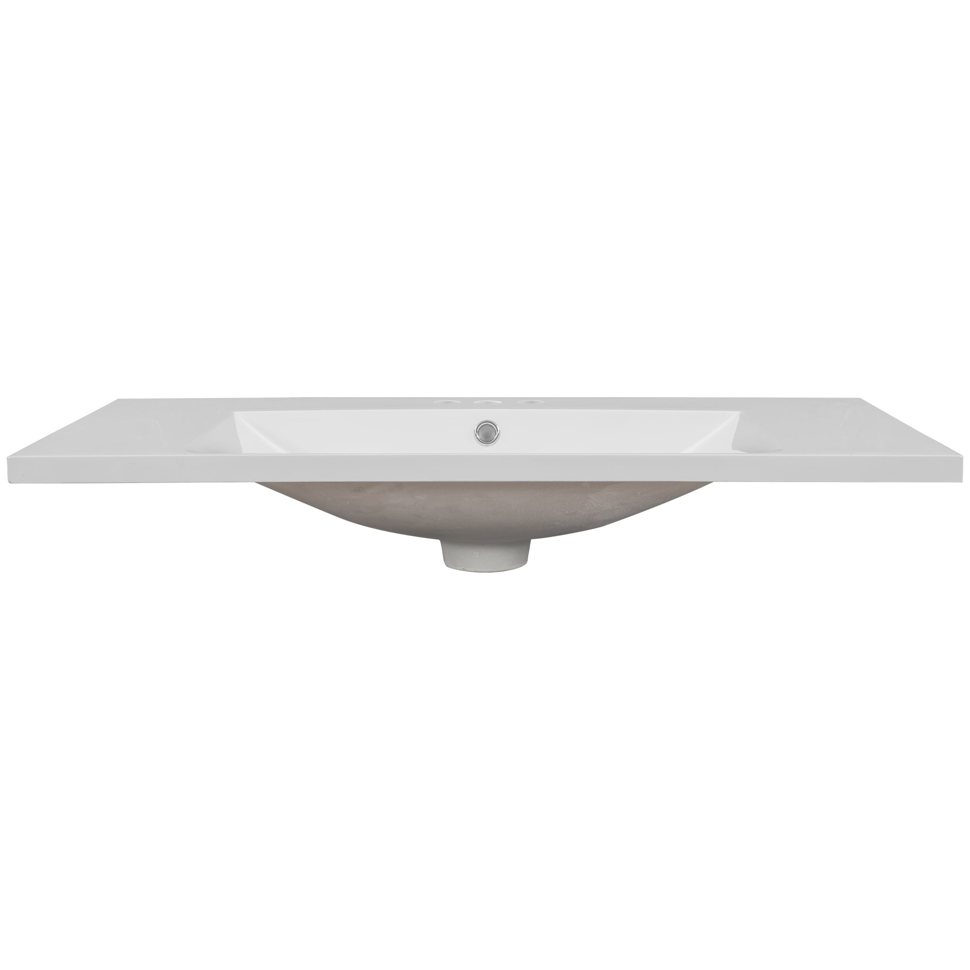 36" Single Bathroom Vanity Top with White Basin, 3-Faucet Holes, Ceramic