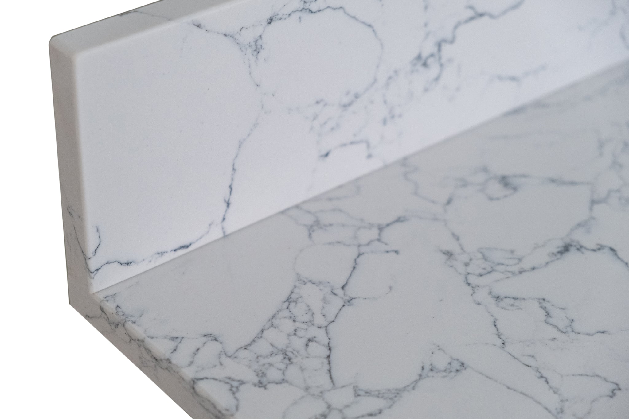 he vanity tops are made of beautiful Engineered stone. All exterior sides are polished for a luxurious look. Each model is complemented with a ceramic Rectangle undermount sink. The matching backsplash is included in each package.